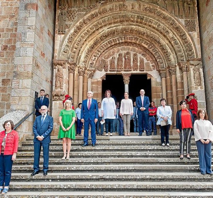 Las instituciones navarras, representadas por Uxue Barkos, Ainhoa Aznárez y los consejeros, homenajearon ayer en Leire a los reyes y reinas de Nafarroa, tal como se viene haciendo cada año desde hace cuatro décadas.