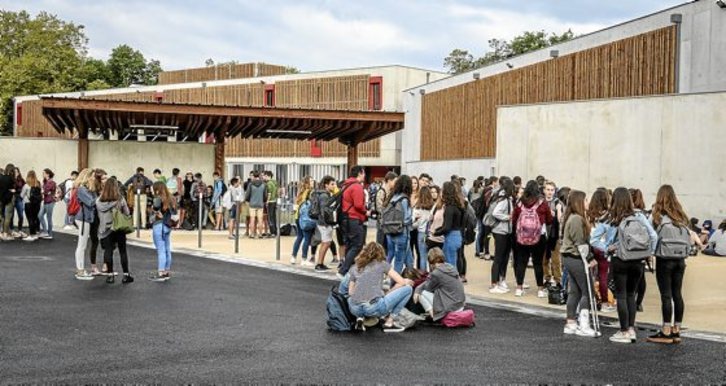 Lapurdi zeharkatu eta Landetara bidean, autobideko azken zubia zeharkatzean, etxe karratuz osatutako ilera zuri bat ikusten da urrunean; Baionako Zup auzoa da. Gibelean, distira itsugarriko eraikin bat dago, Bernat Etxepare lizeo berria. Bada, atzokoan lehen eskola eguna izan zuten bertan, ikasturte hasiera.