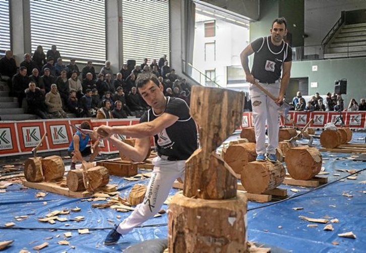 Hasteko, 45 ontzakoa zeinek kolpe gutxiagotan moztu neurtu ziren, eta Otaño eta Lopez izan ziren proba hau irabazi zutenak, enborra 27 kolpetan erdibitu ostean, aurkariei bost kolpeko aldea ateraz.