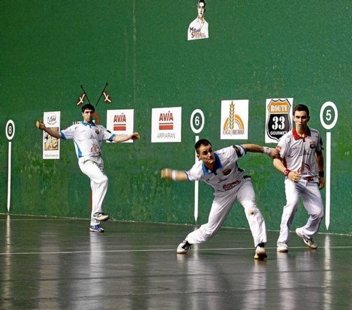 Eneko Labaka, que ya había jugado dos finales sin suerte de este torneo, y Aranguren, que llegaba tras perder la víspera la final de Lezama, salieron con ganas de resarcirse y enseguida pusieron tierra de por medio ante Zubizarreta-Garmendia. El zaguero de Aginaga fue superior en los cuadros largos y el delantero de Albiztur lo aprovechó para escaparse 7-0.