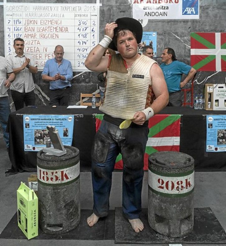 Urrezko harri-jasotzaileen lehiaketan, Imanol Illarramendi eta Mikel Lopetegi izan ziren lanean jardun zirenak. Aurrena Illarramendi aritu zen 163ko zilindro zaharrarekin hiru minutuan, eta 7 jasoaldi eman zizkion. Jarraian, Lopetegi 113ko kubikoarekin jardun zen hiru minutuan, eta berak 23 jasoaldi eman zizkion. Txanda librean 100 kiloko bolarekin lau minutuko txandan, 57 jasoaldi eman zizkion, denera 9.440 kilo bizkarreratuz.