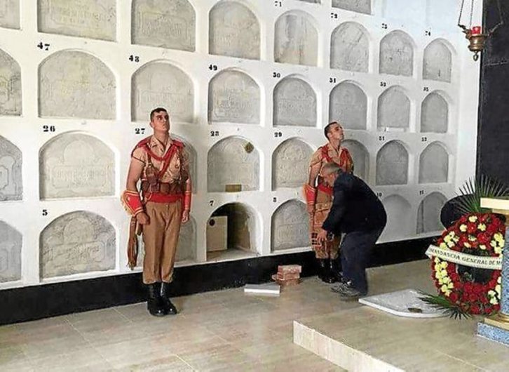 El Ejército costeó el traslado del ataúd miniaturizado del general hasta Melilla, cruzando el Estrecho en un helicóptero militar. Allí, se realizó una ceremonia en la que se volvieron a inhumar en un nicho del Pabellón de los Héroes de los Regulares de Melilla. En respuestas a preguntas del senador de EH Bildu Jon Inarritu, el Ejército niega que el traslado de los huesos tuviera coste alguno. En la ceremonia de la inhumación estuvo presente Juan José Imbroda, presidente de Melilla por el PP.
