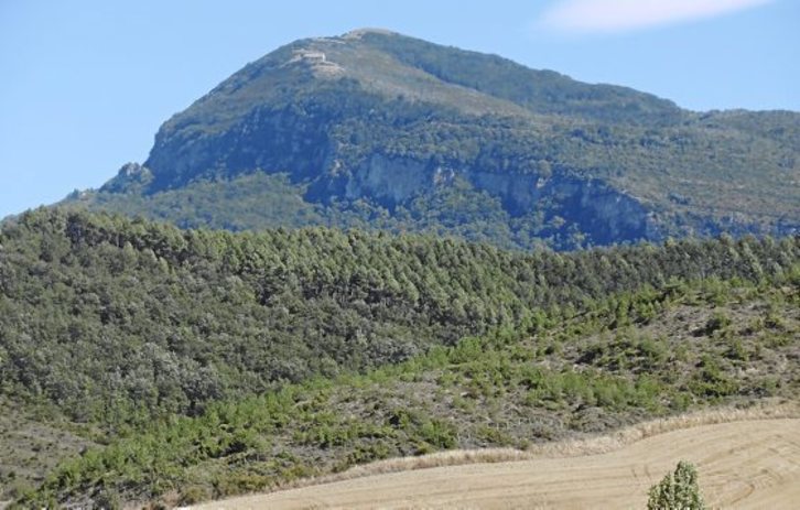 Entre campos de cereal, prados y terreno lleco iremos hacia las faldas de la montaña (S) hasta alcanzar el lindero de un extenso pinar, tras tomar una pista finalizar poco después en Rekaritz (30). Aquí entraremos en el bosque autóctono por una amplia senda, culebreado entre roquedo de conglomerado desprendidos de la muralla que tendemos sobre nuestra cabeza.