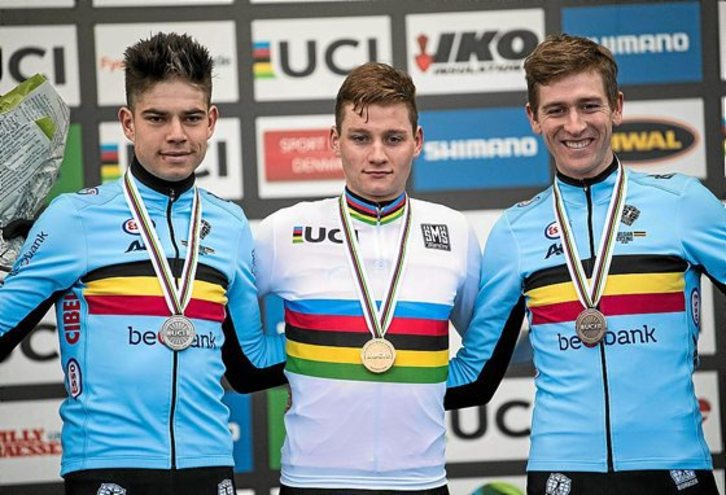 Mathieu van der Poel rompió ayer en Bogense (Dinamarca) la maldición que le perseguía en las tres últimas ediciones de los Mundiales, en las que Wout van Aert había conseguido el maillot arcoiris. El holandés recorrió en cabeza en solitario la segunda mitad de la prueba y el corredor del Jumbo del World Tour se tuvo que conformar con la medalla de plata que Toon Aerts estuvo a punto de arrebatarle, pero sufrió una caída cuando marchaba en segunda posición que le hizo tener que resignarse a llevarse la medalla de bronce. Javier Ruiz de Larrinaga se despidió con una trigésima plaza.