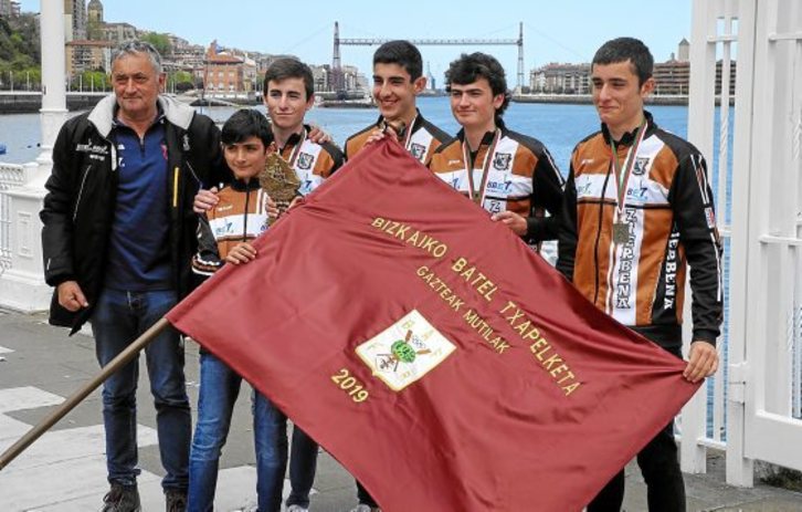 Iñigo Ibáñez Llanas, Asier Llanas Palomino y Gaizka Llanas Lozano comenzaron con siete años en este deporte. «No podían ni con el remo, los pobres», recuerdan con humor sus progenitores. Su trayectoria parece meteórica desde que estuvieron a las órdenes de varios entrenadores hasta que su tío Iñaki tomó la responsabilidad de entrenarles y ya lleva seis años con ellos. Les ha hecho ser campeones de Bizkaia en infantiles, terceros de Euskadi ese mismo año y séptimos en el Campeonato de España; en cadetes ganaron los campeonatos de Bizkaia y Euskadi, y fueron segundos de España; y el año pasado, Iñigo, que es un año mayor –en julio cumplirá 18 años–, hizo segundo de Bizkaia, tercero de Euskadi y campeón de España de bateles. «Este año ha sido la temporada más completa», recalcan sus familiares –oro en los tres campeonatos en bateles y plata en los tres de trainerillas–.