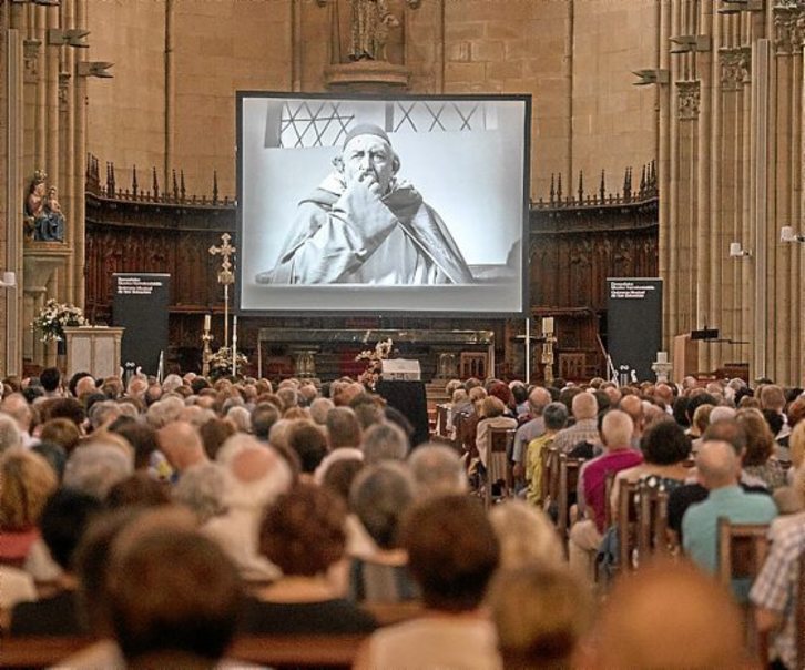 Cantoría cantó fragmentos de cuatro de estas ensaladas de Flecha, las denominadas “El jubilate”, “La justa”, “El fuego” y “La bomba”, y fue fácil vislumbrar por qué están cosechando tanto éxito. Aunque vocalmente esta piezas no requieran de gran virtuosismo, el cuarteto logra llegar al fondo de su contenido teatral, cuidando cada pasaje y dando sentido a cada escena, ya sea un lucha con un demonio o un contrito canto espiritual. Ponen la interpretación al servicio de unas creaciones que requieren ante todo eso, recrearlas con imaginación, y no tanto la pureza vocal o la perfección técnica, aunque el grupo va bien servido también en esos aspectos. El resultado es un espectáculo muy directo, cómico a veces, tierno en otra ocasiones, pero siempre entretenido y popular, que es seguramente a lo que aspiraba Flecha. Se interpretaron asimismo fragmentos de diversos cancioneros y de obras de Cárceres, Antxieta y Guerrero, lo que dio una imagen bastante completa de un repertorio que, como ya ocurría con La Colombina, entusiasma al público.