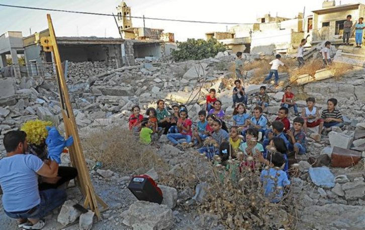 Los títeres están aferrados a la historia del ser humano. Su origen está íntimamente unido a la imaginación. Su magia transforma el espacio y el tiempo, agita las conciencias y alivia el dolor. Basta con observar las sonrisas de esos niños sirios del pueblo de Saraqib, en medio de la devastación de la guerra que ha destrozado sus escuelas y familias, para constatar todo su poder.