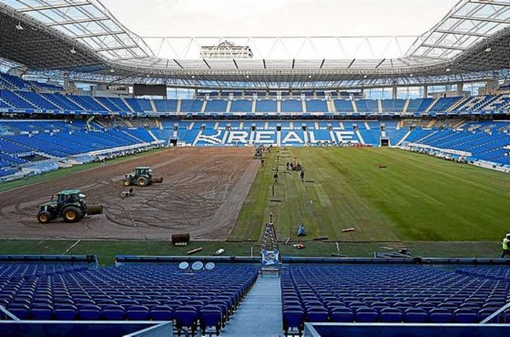 Mientras se prepara este partido, en Anoeta siguen las obras de sustitución del césped, cuyo deterioro era ya notable. Una vez levantado el césped, desde el miércoles trabajan en la instalación de los nuevos tepes cuya colocación concluirá mañana. El objetivo, en el que trabaja la empresa Laziturri con hierba de Cáceres, es que el campo esté listo para el partido contra el Eibar del siguiente sábado.
