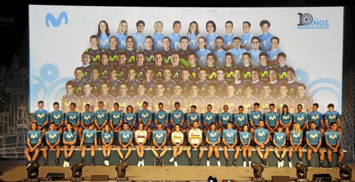 Movistar presentó ayer en Madrid una plantilla muy renovada con 14 incorporaciones entre los 28 corredores confirmados por el momento a la espera de que se termine de concretar el futuro de Andrey Amador, que renovó en julio por el equipo navarro y después se comprometió con el Ineos, con el que quiere correr el próximo año.