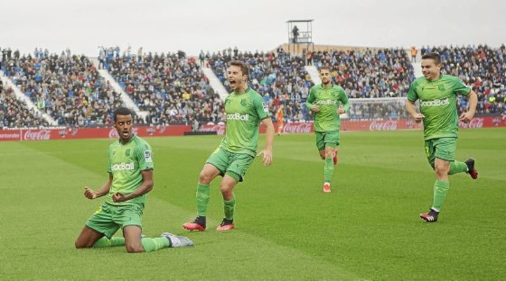 Y eso que le pasó lo mejor que le podía suceder con las alineaciones que presentaron Imanol y Aguirre porque eran más propicias para defender que para atacar. Zubeldia, Guevara y Sangalli formaban un centro del campo más defensivo que ofensivo y el mexicano repitió el once que empató en el Wanda con la única variación obligada en la portería de la entrada de Soriano en lugar del sancionado Cuéllar. El portero suplente del Leganés permitió a la Real adelantarse con un mal pase al centro que recuperó Sangalli y, tras un rechace, el balón llegó a Isak, que marcó su quinto gol en los últimos cuatro encuentros de un potente disparo con la derecha.