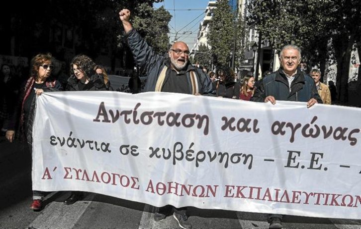 Belaunaldi guztietako milaka greziar mobilizatu ziren atzo Gobernuaren pentsio erreformaren aurka. Hirugarren greba da duela zazpi hilabete Demokrazia Berria alderdi eskuindarrak boterea eskuratu zuenetik. EBk duela bost urte herrialdea umiliatu eta hamarkadetarako estutuagatik, justizia sozialaren bandera altxako duenik badela berretsi dute berriz ere.