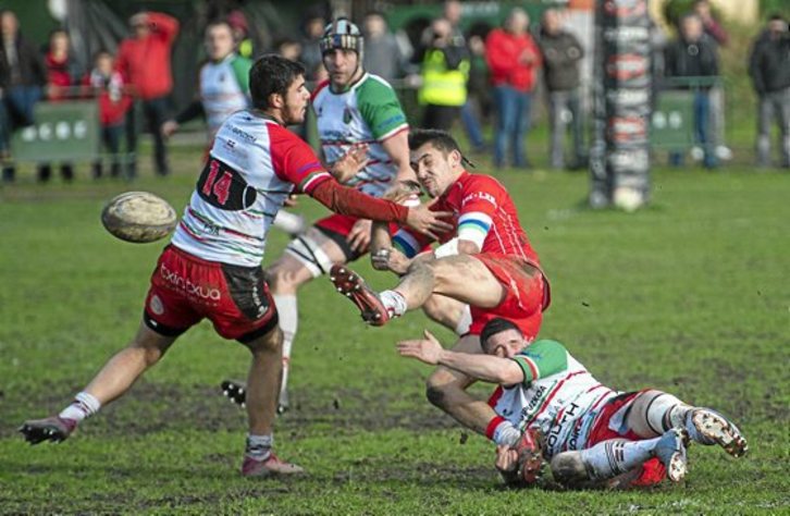 Lo cierto es que los visitantes iniciaron el duelo mandando. Un 0-23 de inicio (m.28) puso cuesta arriba el partido para los goierritarras, que pudieron recortas diferencias antes del descanso gracias a dos ensayos y un puntapié de castigo para poner el 13-30 en el luminoso.