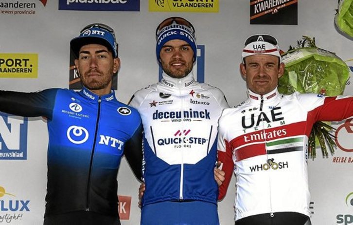 Kasper Asgreen (Deceuninck) logró imitar la victoria conseguida el año pasado por su compañero Bob Jungels en la Kuurne Bruselas-Kuurne. Se marchó a 30 kilómetros de meta con Boris Vallée y Roy Jans, a los que dejó en una exhibición en la que aguantó con una ventaja que no superaba el medio minuto hasta que se vio favorecido por un despiste de los dos corredores que tiraban del pelotón en una rotonda a tres kilómetros de meta, al tomarla mal y salirse del recorrido de la prueba cuando tenía solo nueve segundos.
