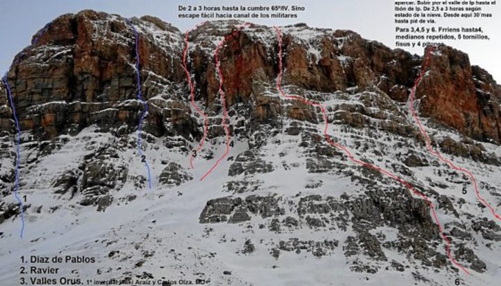 Alberto Fernandezek, Ruben Sanmartinek, Iñaki Arakistainek, Joseba Larrañagak eta Mikel Zabalzak mistoko zein izotzezko bost bide berri zabaldu dituzte bisita gutxi jasotzen dituzten bi ipar paretatan.