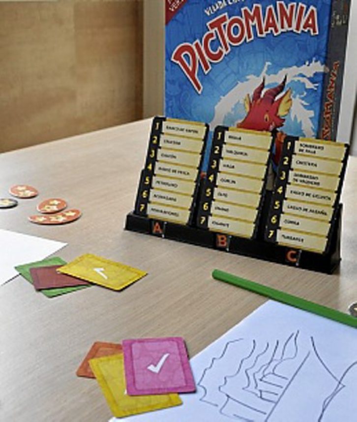 La diferencia es que Chvátil resuelve uno de los problemas de estos diseños, el entreturno, ese rato en el que unos están mirando a las musarañas mientras otros juegan. En “Pictomania” todos dibujan a la vez –cada uno algo diferente– y todos tratan de acertar lo más rápido posible qué han dibujado los demás. Se juega en cuatro rondas de dificultad creciente. Es muy divertido, salvo que estemos rodeados por gentes con menos espíritu que un perro de porcelana, y genera intensos debates del tipo «¿de verdad me estás diciendo que eso redondo es un kiwi?».