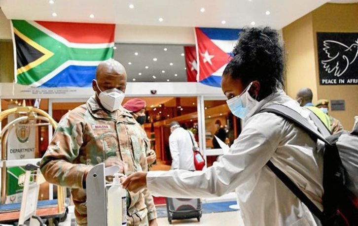 Larunbatean, Diaz-Canel presidenteak Covid-19ak sortutako egoerari buruzko azalpenak eman zizkion nazioari. Kurbaren gailurrera iristeke, 54 hildako eta 1.369 kasu baieztatu zituen 11 milioi biztanle dituen uhartean. Halaber, Kubak 1.450 mediku eta erizain bidali ditu Karibe, Afrika –irudian, Pretoriara iristen, atzo– eta Europako 22 herrialdetara. Badugu zer ikasi kubatarrengandik.