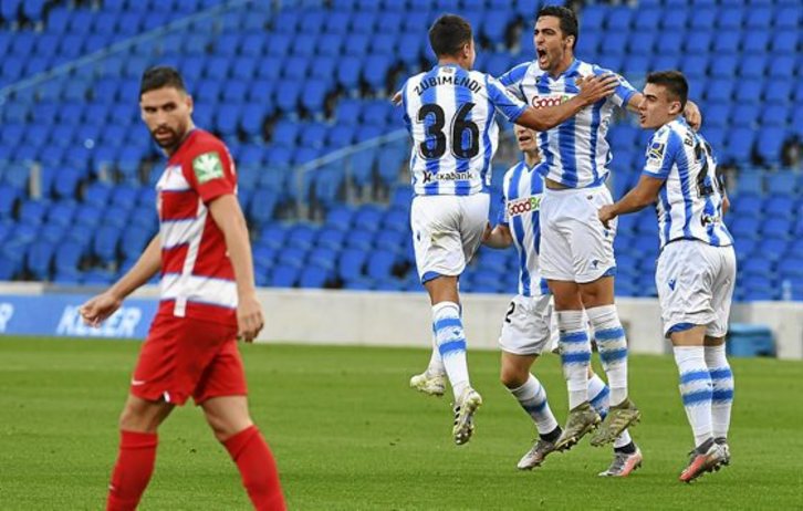 La Real tuvo más opciones en el primer tiempo, dos claras de Barrenetxea y dos de Portu, y no marcó y al Granada le bastó con eso para ponerse con un 0-2. Pero esta Real no se rinde por nada que le pase. Merino metió a su equipo en el partido, Willian José y Djouahra tuvieron dos claras opciones para empatar y el extremo del filial dio además la asistencia al gol de Oyarzabal que hacía justicia a lo visto en el partido. El punto sabía a gloria, pero la Real no pudo mantenerlo porque al Granada le bastó con lanzar un balón al área para lograr la victoria que necesitaba.