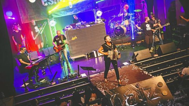 El ambiente festivo se palpaba en el aire viendo las imágenes del Kafe Antzokia de Bermeo. Canciones como “Argitzeraino” o “Euskaraz bizi nahi dut” animaron al público, que entre la lluvia de confeti empezaba a interactuar con la banda cantando entre otros el himno a favor del euskara.