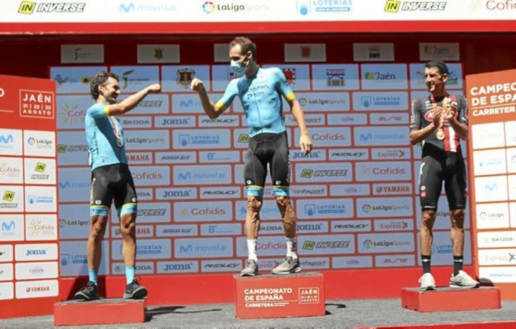 El Astana rompió ayer la hegemonía en el campeonato de España de ruta en línea del Movistar, ganador de doce de las trece últimas ediciones, con el doblete de Luis León Sánchez y Gorka Izagirre en Jaén, donde el triatleta vizcaino Ander Okamika logró la plata en la categoría élite.