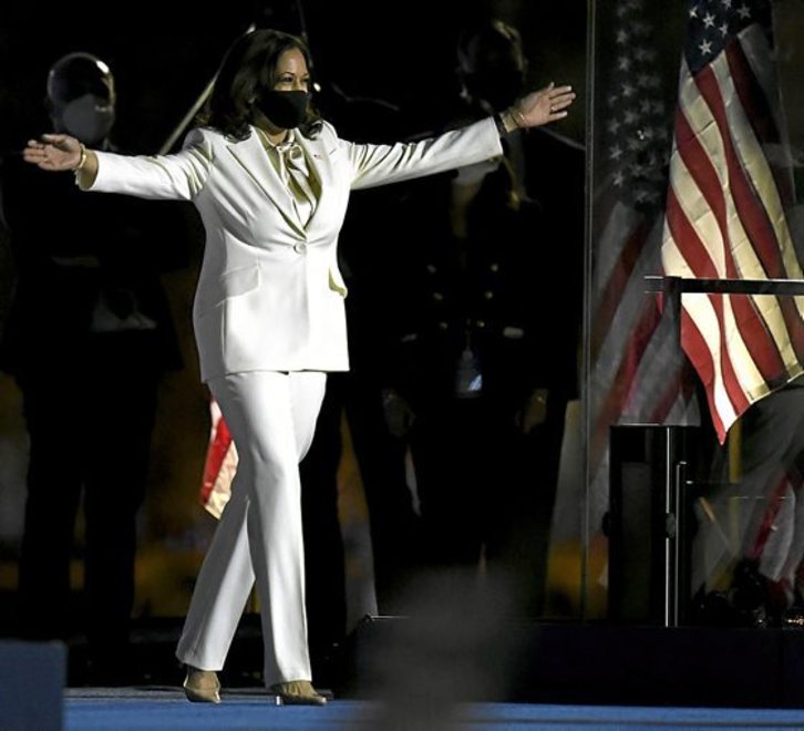 Postu honetan lehen emakumea izango naiz, baina ez azkena», aldarrikatu zuen demokratek presidentetzarako hauteskundeak irabazi berri AEBetako lehen emakume presidenteordea izango den Kamala Harrisek. Oraingoz senataria den Harris zuriz jantzi zen Joe Biden presidente hautatuaren ondoan lehen agerraldia egiteko, Wilmingtonen (Delaware). Duela mende bat bozkatzeko eskubidearen alde AEBetan borroka egin zuten emakume sufragisten omenezko keinua izan zen. Biharamunean, Susan B. Anthony (1820-1906) sufragisten liderra izan zenaren hilobia loreekin eta esker oneko mezuekin josita agertu zen.