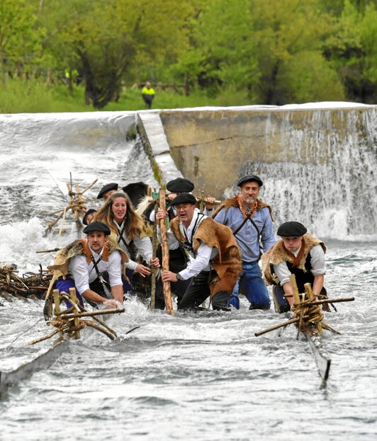 Rafting-a zer zen ez zuten jakingo duela hamarkada batzuk Burgin, baina egin egiten zuten. Egurrezko almadia prekarioak Pirinioetako enborrez zamatu eta kilometroak egiten zituzten ur-lasterren menera, baita Zaragoza edo Tortosaraino ere. Galdu zen ofizio hura, baina praktikan soilik, Burgiko herritarrek urtero jaurtitzen baitituzte almadiak Ezka ibaira, Almadien Egunean, atzo egin bezala. Almadiazain lanak egin zituzten ausartenek, presan behera zutik irauteko desiran, lanbide hura zertan zen oroitu eta Nafarroako herrira erdu ziren milaka pertsonei erakusteko.