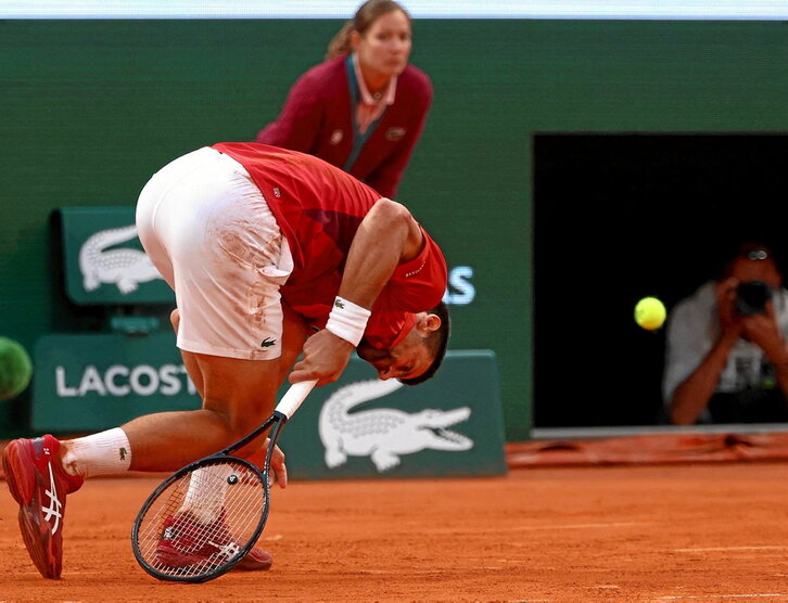Musetti italiarraren aurka aurrenik eta Cerundolo argentinarraren kontra gero hamar set eta bederatzi ordu jokatu ostean, Novak Djokovicek Roland Garroseko final-laurdenak jokatu behar zituen, baina eskuin belaunak ez dio jarraitzen utzi serbiarrari. Meniskoa minduta dauka eta, hala, Roland Garros bertan behera utzi zuen atzo 37 urteko tenislariak. Ezingo du Ruud norvegiarraren aurka final-laurdenik jokatu; ezin, halaber, iazko garaipenik errepikatu Parisen, eta Jannik Sinner italiar gazteak kenduko dio ATPko zerrendako lehenengo postua ere.