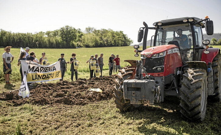ELB sindikatuak, Lurzaindia elkarteak eta Ostia sareak ez dute amore emateko asmorik. 2014. urteaz geroztik Marieniako lur eremua laborantzarako atxikia izan dadin borrokan diren eragileek ekintza sinbolikoa egin zuten atzo. Hala, betoi edo hormigoiaren ordez, barazkiak hazteko asmoa irudikatuz, traktorea martxan jarri eta lurra iraultzeari ekin zioten. Ekintza horren bidez «erakusten dugu hemen garela, eremu hau okupatzen dugula, lurrak landatzen ditugula», adierazi zuten.