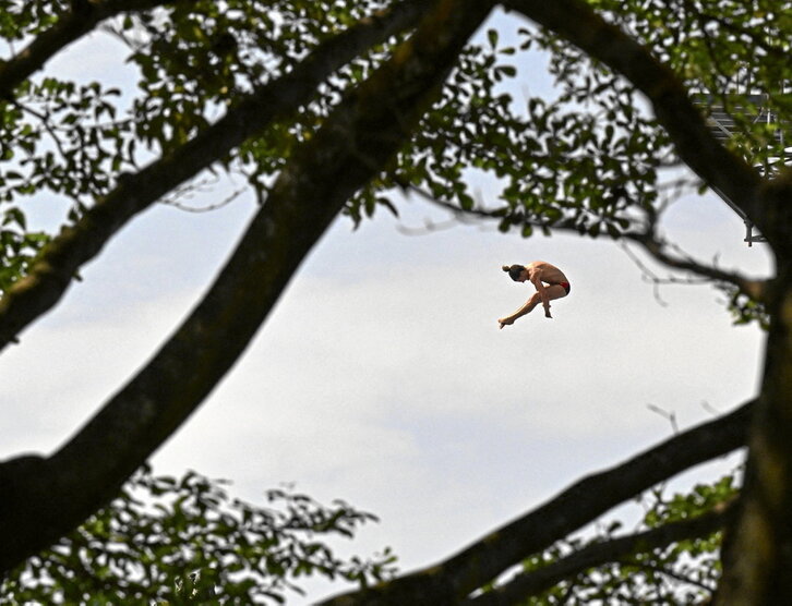 Bi artisten artean sorturiko irudia da. Lehenbizikoa, David Colturi atleta estatubatuarra, 27 metroko tranpolinetik eginiko jauzian modu benetan akrobatikoan airean mugitu dena. Eszena hori denboran gelditzeko arte handiarekin ibili dena, bestetik, argazkilaria bera, Oli Scarff, kirol argazkilaritzan ezaguna. Hain une exijentean -Igeriketako Munduko Txapelketako final batean- sortzaile aritu da. Colturik, garaiera handiko tranpolin jauzian bide oparoa egin duenak, ez zuen dominarik lortu, baina irudi gogoangarri honekin itzuliko da Singapurretik.