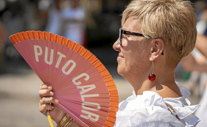 Normalean, eguzkiari eta beroari eguraldi ona deitzen zaio. Larrialdi klimatikoaren garaiotan, ordea, ontzat jotzen zena ez da aurrerantzean nahitaez berdin baloratuko. Adituek diotenez, uda hau izango da biziko dugun udarik freskoena. Zentzu horretan, muturreko fenomeno klimatikoak geratzeko etorri dira, bero-boladak barne. Aditu izan gabe ere, argazkian ageri den Tafallako emakumeak ederki ulertu du aro honen patua. Hori bai, bertan festetan daude eta festetan dena da eramangarriagoa, baita bero zitala ere.