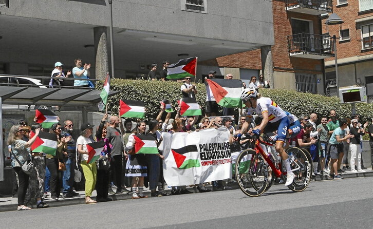 Israel-Premier Tech txirrindulari taldeak Espainiako Vueltan parte hartzea gaitzetsi dute EH Bilduk eta Ahal Duguk. Ez da gutxiagorako: taldearen sortzailea Sylvan Adams da, kanadar-israeldar enpresari aberats bat, kirolaren bidez Israelgo Estatuaren irudi ona ematea helburu duena eta Netanyahurekin proiektu askoren bidez lotura daukana. Gaurko eta biharko etapak Euskal Herrian hasi eta bukatuko dira, eta hainbat deialdi daude palestinar herriari elkartasuna adierazi eta Israel-Premier Tech taldeari kontrakotasuna agertzeko.