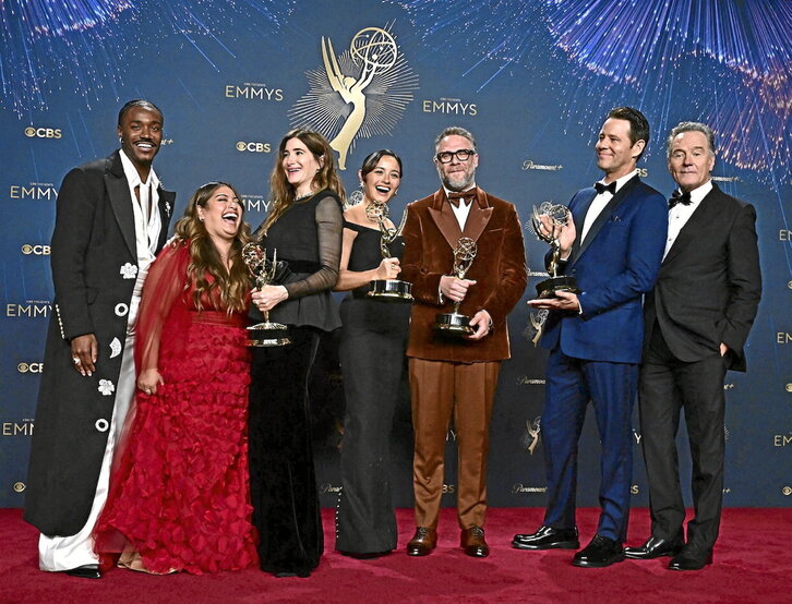 ‘‘The Studio’’, con 13 premios Emmy, entre ellos a las categorías de mejor serie de comedia y mejor actor, batió el récord de la gala, superando la marca alcanzada en 2023 por su contendiente ‘‘The Bear’’, con diez. ‘‘The Pitt’’ fue otra de las cintas de los premios. Ganó en la categoría de mejor serie de drama y su protagonista, Noah Wyle, triunfó como mejor actor de drama. En el apartado a mejor miniserie, ‘‘Adolescence’’ conquistó ocho estatuillas. Owen Cooper, su protagonista, se convirtió en el actor más joven en recibir un Emmy de interpretación.