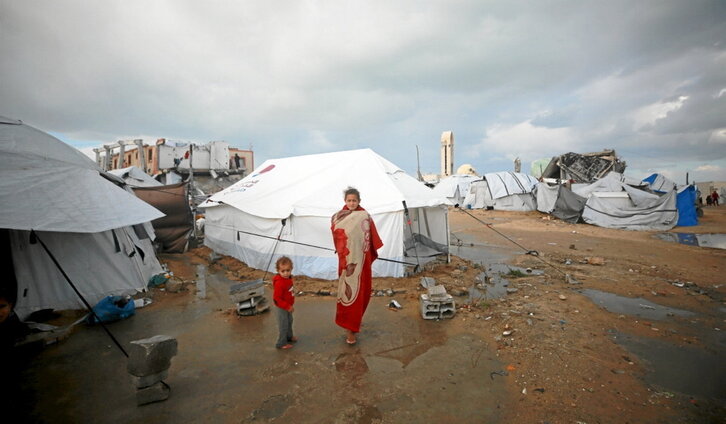Neguko ekaitz bortitzen ondorioz, Gazako errefuxiatuen kanpalekuetan dozenaka kanpin-denda urez bete dira, eta euriak eta hotzak jada nahikoa prekarioa zen egoera larritu dute. Atzo emakume bat eta 7 urteko haur bat hil ziren ekaitzen ondorioz. Unrwako zuzendariak salatu duenez, beharrezkoa den laguntza sartzea eragozten ari dira, eta gazatarrek etxe mugikorrak eskatu dituzte segurtasunez bizitzeko. Mendebaldeko gobernuen konplizitatearekin, Israel Gazako populazioaren biziraupena oztopatzen ari da.