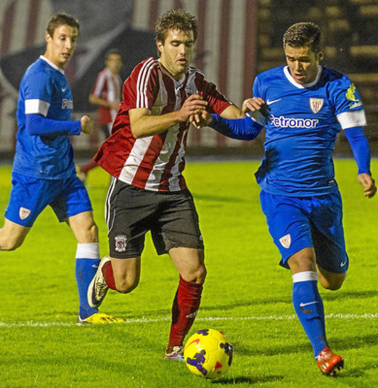 Poco hubo que comentar en el terreno estrictamente futbolístico. Entre otras cosas porque el campo, pesado por la cantidad de lluvia caída en las últimas jornadas, tampoco daba para muchas alegrías. El Athletic -que se había dejado en casa a una decena de jugadores, los tocados De Marcos, Iturraspe, Laporte, Aduriz, Balenziaga y Kike Sola, además de Gurpegi, Iraola y Muniain- jugó de inicio con Iraizoz, Albizua, Etxeita, Ekiza, Saborit, Beñat, Herrera, Aketxe, Susaeta, Guillermo e Ibai. Por parte local, Ramón Castelo alineó a Herrera, Gorka Martínez, Artabe, Gaizka Bergara, Juaristi, Casado, Joseba del Olmo, Eraña, Luariz, Agirre y Beltrán.