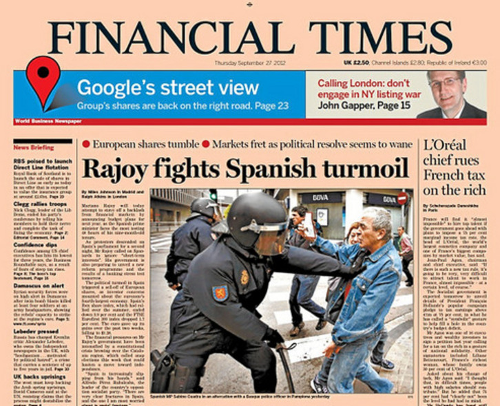 La huelga general de setiembre de 2012 fue una de las más potentes que se recuerdan en Iruñea, sobre todo por los incidentes que hubo en Alde Zaharra y la brutal represión policial. La imagen de un policía español golpeando en plena calle al diputado por Amaiur Sabino Cuadra acabó siendo la portada del influyente «Financial Times». Cuadra denunció esta agresión y, más de un año después, el juez aprecia que el policía pudo cometer una falta al golpear al parlamentario. No es el delito de atentado que Cuadra solicitó, pero bastará para poder llevar a juicio al agente antidisturbios.