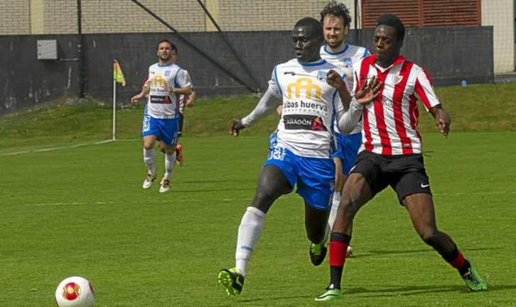 La superioridad rojiblanca fue evidente desde el mismo inicio. No tardaron en llegar las ocasiones y tampoco el primer gol. En un encuentro prácticamente sin faltas, la segunda de Moustapha sobre Unai López iba a provocar el primer tanto de los vizcainos. La estrategia abría el marcador. Eguaras sacaba rápido y en profundidad sobre Williams y el punta no perdonaba. El tanto le sentó bien al Bilbao Athletic, que cercó la portería de Ribas. Williams volvería a disponer de un par de ocasiones para ampliar la renta pero su velocidad para el desmarque no estuvo acompañada ayer por la puntería. Fue así, Guarrotxena, el que abrió brecha antes del descanso, con un fuerte remate a media altura que se convertía en su octavo tanto de la temporada. Afortunado tanto porque el balón tocó en Laguarta antes de entrar, imposibilitando que llegase el cancerbero visitante.