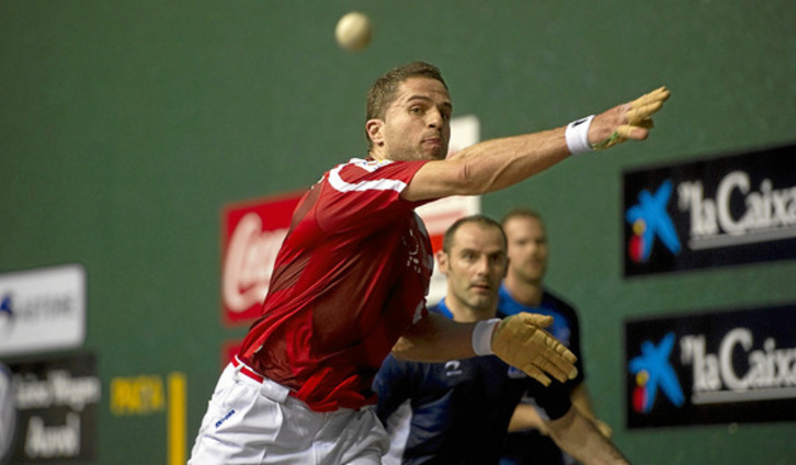 El delantero de Goizueta no quería ninguna sorpresa ni imprevisto en clave de lesión e hizo lo que quiso con la pareja azul. El pequeño de los Olaizola entró en acción nada más comenzar, con la jugada inicial del duelo y con una volea que pegó en la chapa y que puso a los azules por delante en el marcador.