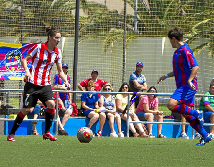 El primer gol había llegado antes del descanso. En un primer tiempo que cumplió las previsiones: iniciativa y ritmo a cargo del Athletic, frente a un Levante que dedicó prácticamente todos sus esfuerzos a proteger la portería de Sandra Paños. Afortunadamente, esta vez no le salió bien. Aunque el gol se hizo esperar. Incluso hubo que lamentar un par de balones al larguero, de Irune Murua y Erika en los primeros compases del choque, antes de poder celebrar el 0-1. Llegaba a diez minutos del descanso, con un balón de Eli Ibarra que Nekane, que está acabando la temporada en plena forma goleadora, envió al fondo de las redes.