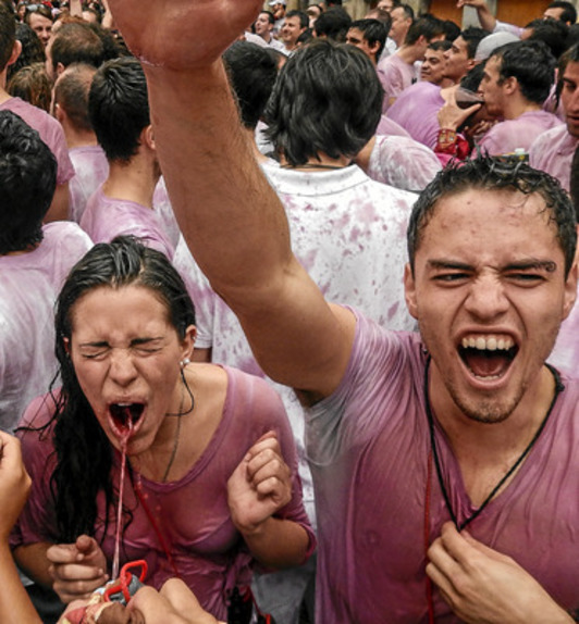 El segundo es ni fu ni fa, tiene efluvios de cava de super y cerveza, y reúne a los/las que todavía no se atreven a meterse al fregau con los que ya dieron lo mejor de sí y prefieren salirse un poco («because is happyyyy», vocean los altavoces de la Plaza del Castillo mientras proyectan un vídeo turístico de la ciudad).