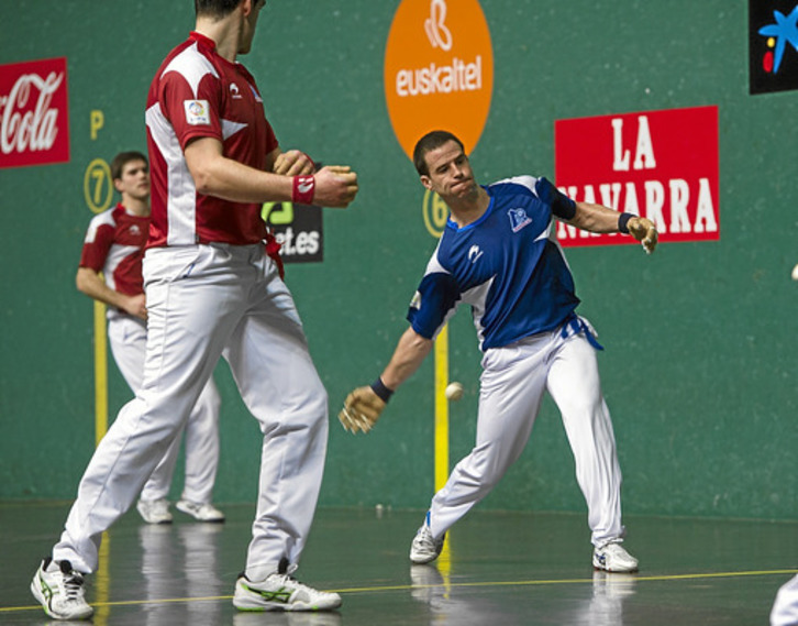 Sabedor de lo que les esperaba, a Jokin Altuna no le tembló el pulso para arriesgar a cada oportunidad que se le presentaba, con bastante acierto. Buscó los pies a Ezkurdia, enredó al de Arbizu e incluso golpeó con nervio de derecha, lo que unido a un par de errores colorados y una pelota llevada a dos botes por Barriola -en la que quedó la duda de si el juez entendió que Ezkurdia había golpeado la chapa-, los azules se fueron, contra todo pronóstico, en el marcador con un claro 1-8.