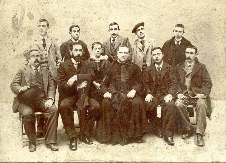 1895eko otsailaren 2an, igandez, “Vizcaytik Bizkaira” estreinatu zen Bilbon, Resurreccion Maria de Azkuek idatzitako hiru ekitaldiko zarzuela. Obrak euskal jendartearen espainolizazioa salatzen zuen, eskola “nazionalaren” eta soldadutzaren bidezkoa, eta eragin handia izan zuen. Ondorengo egunean, Bilboko “Euzkeldun Batzokija”-k omenaldi bazkaria antolatu zuen Azkueren eta zarzuelako aktoreen omenez. Sabino Arana, “Bizkaitarra” egunkariko zuzendaria, txundituta gelditu zen obrarekin, eta astekariaren bi zenbaki eskaini zizkion, urte bereko otsailaren 17an eta 24an argitaratuak. Otsailaren 24ko zenbakiko ohar batean, “Bizkaitarra”-k salatu zuen Espainiako gobernadoreak 200 pezetako isuna jarri zuela gobernuaren baimenik gabe bazkaria antolatzeagatik. Goiko argazkian eserita agertzen dira Sabino Arana Goiri, ezkerretik bigarrena; Felix Landaburu, hirugarrena, eta Resurreccion Maria de Azkue, laugarrena. Zutik, ezkerretik laugarrena, Galo Alvarez Arteta da. Gainerakoak zarzuelako aktoreetako batzuk dira.