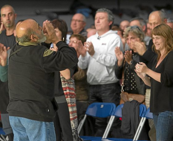 Gaziari gozoa; kartzelatik bueltan etorri berri denik ere bada. Pablo Gorostiagak zortzi urte egin ditu espetxean 18/98 sumarioan zigortu ostean. Espetxeratu aurretik Laudioko alkate izan zenak parte hartu du kanpainan. Gasteizen, Europa Jauregian izan zen EH Bilduren ekitaldian. Txalo artean hartu zuten bertaratuek eta muxuz erantzun zien berak.