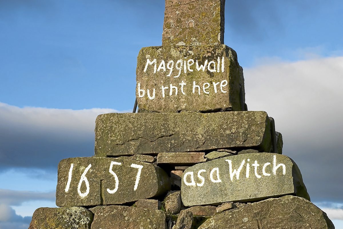 Eskoziako Dunning herrixkaren kanpoaldean, Duncrub gazteluaren parkeetan, andrazko baten oroimena gordetzen duen harrizko monumentu bat dago. Monumentuak gurutze bat du goian, sei metrora, eta, zuriz margotuta, harrien azalean, idazki bat du: «Maggie Wall 1657. urtean erre zuten hemen sorgin modura». Erregistroen arabera, 6-9 emakume inguru kondenatu eta hil zituzten sorginkeriarengatik Dunning herrian. Baina Maggie Wall-en izenik ez da ezein erregistrotan ageri.