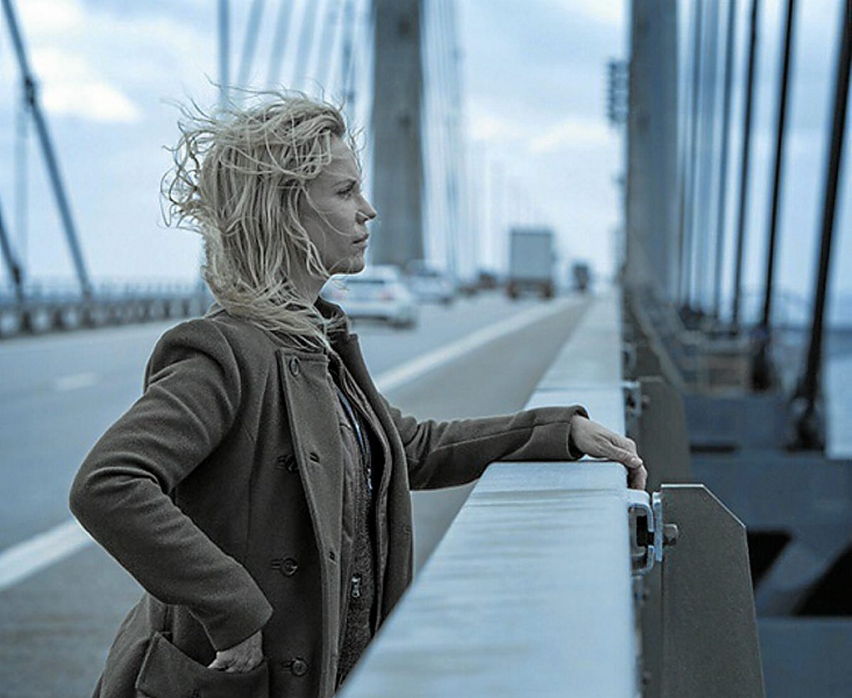 Oso interesgarria egin zait ezagutzen ez nituen bi herrialdeen arteko desberdintasun kultural eta politikoak pantailan ikustea. Bi hizkuntzatan filmaturik egoteak kontraste hori modu sotilean azpimarratzen du, eta ironiari ere tartea ematen dio. Telesailaren oinarri sendoetako bat bi protagonistak dira –hurrengo denboraldietan berriak egongo diren arren–; ezin desberdinagoak, baina era berean bateragarriak. Martin polizia danimarkarra da, seme-alaba ugari dituen familiako aita, zintzoa eta, batez ere, egoeraren arabera azeleragailua ala balazta zapaldu dakiena. Saga Noren polizia suediarra, aldiz, emakume bakarti eta bitxia da, Asperger sindromearen eraginez besteekin erlazionatzeko arazo larriak dituena eta lanarekin erabat itsututa bizi dena.
