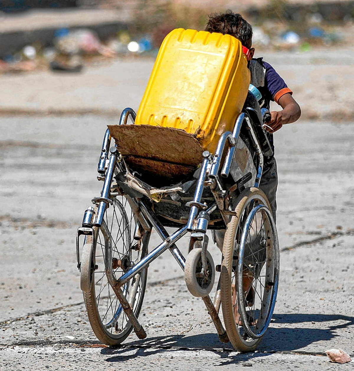 Yemengo haur bat ura garraiatzen, Taez hirian. Ahmad AL-BASHA