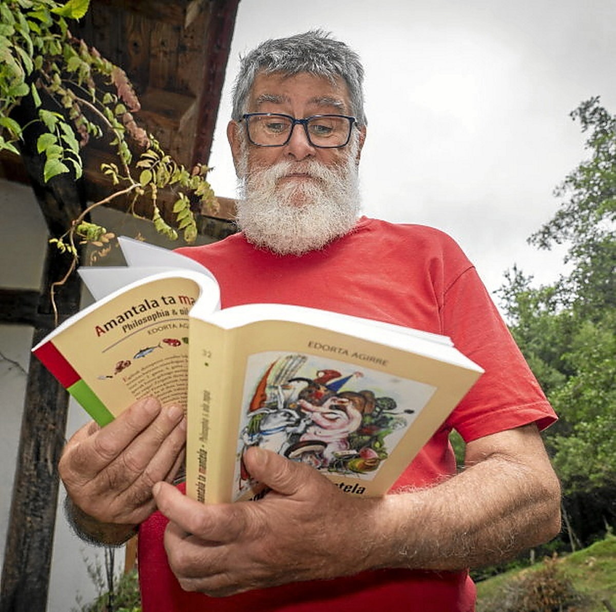Iazko udan argitaratu zuen “Amantala ta mantela. Philosophia & oilo zopia” zazpigarren liburuaz jarduteko egin dugu hitzordua Edorta Agirrerekin Zubietan, bere etxean, baina elkarrizketak beste bide batzuetara eraman gaitu. Elikadura, euskara, itsasoa... konturatu gabe joan zaigu ordubete mahai bueltan.