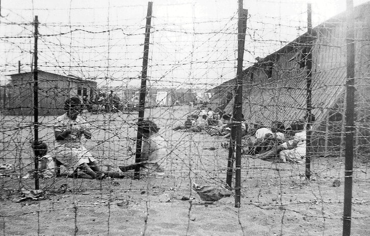 1939ko otsailean ehunka euskaldunek Kataluniako muga zeharkatu zuten, frankistengandik eta errepresiotik ihesi. Kataluniatik ihes egin zuten euskal errefuxiatu gehienak Argeles sur Mer kontzentrazio-esparruan sartu zituzten muga igarotzean, eta beste batzuk, berriz, Saint-Cyprien eremuan. Argeles sur Mer kontzentrazio-esparrua izan zen euskal komunitate antolatu bat izan zuen lehena, «Gernika berri» izeneko eremu bat mugatu zuten, eta bertan, 6.500 euskal errefuxiatu inguru sartu zituztela kalkulatzen da. Hondartza baten gainean eraiki zuten, eta ez zuten edateko urik. Esparrua bisitatu zuen Frantziako batzorde sozialista batek egindako txosten baten arabera, sei hilabete eta lau urte bitarteko haurren % 60 hil egin zen, gehienak gosez eta disenteriarekin. Helduen artean gaixotasun ohikoenak disenteria, pneumonia, sukar tifoideak, tuberkulosia, eskorbutoa eta legenarra izan ziren. Argeles sur Mer kontzentrazio-esparruko izugarrikeria erakusten duen 1939ko argazki hau, non barrakoiak ikusten diren, baita emakumeak eta haurrak ere alanbre-hesi baten atzean, Manuel Moros (1898-1975) margolari eta argazkilariak egin zuen, jatorri kolonbiarrekoa zenak eta Rossellon bizi zenak. Manuel Morosek errefuxiatuen etorrerari eta horiek kontzentrazio-esparruetan barneratzeari buruzko dokumentu grafiko garrantzitsua utzi zuen. II. Mundu Gerran, naziengandik ihes egin behar izan zuen eta bere Roselloko etxea utzi, non burdinazko kutxa batean lurperatu zituen bere negatiboak. Urte batzuk geroago, 10 urteko haur batek lurpetik atera eta ustekabean aurkitu zituen.