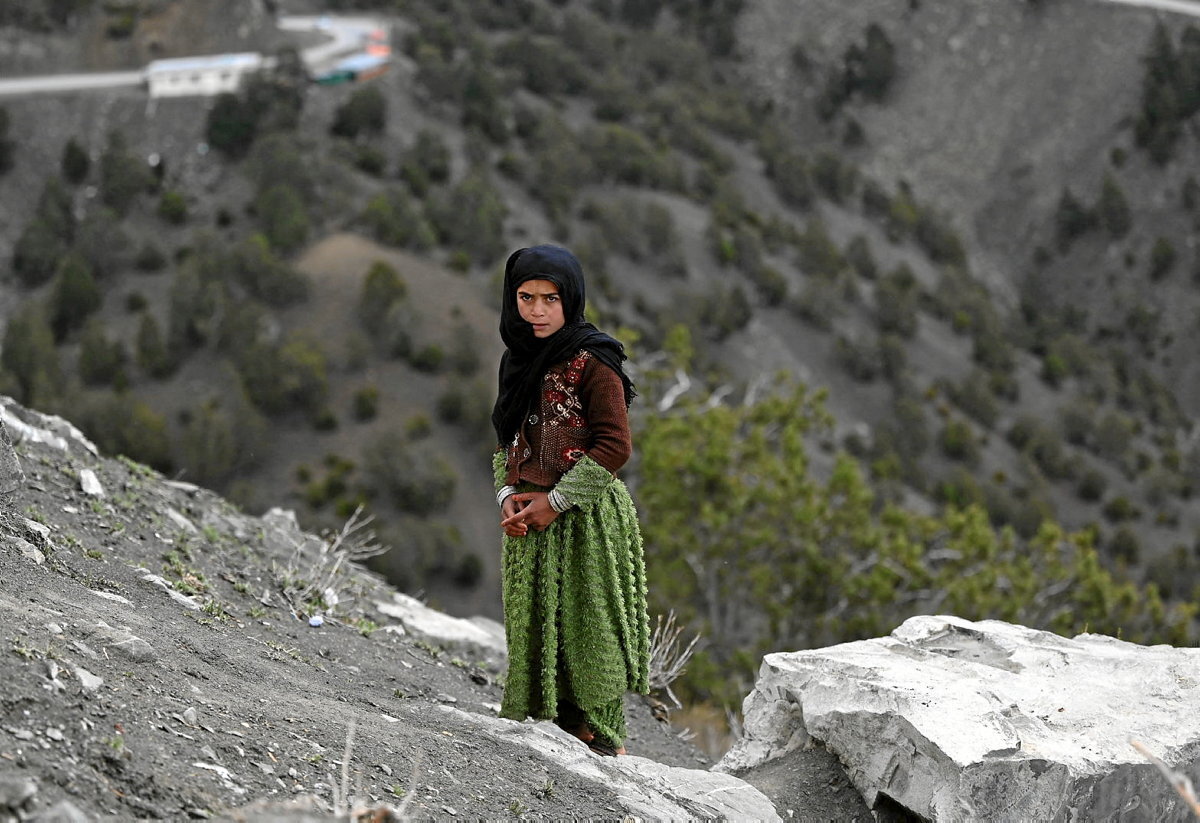 Neskato afganiar bat, zutik, mendi-ingurune batean. (Wakil KOHSAR / AFP)