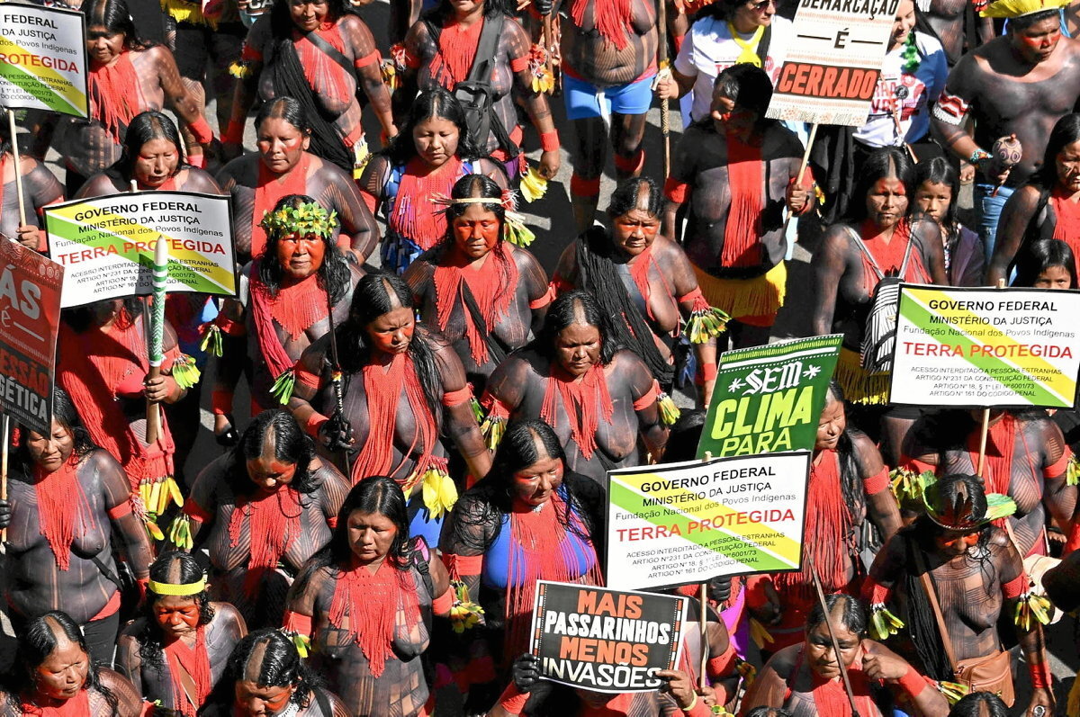 Emakume indigenen martxa Brasilian (Brasil), haien eskubideak aldarrikatzeko. (Evaristo SA / AFP)