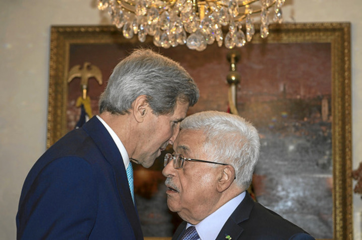 John Kerry intensificó ayer su actividad diplomática en Oriente Medio y tras reunirse con el presidente de la Autoridad Palestina (ANP), Mahmud Abbas,; el primer ministro israelí, Benjamin Netanyahu, y el rey Abdallah II de Jordania. anunció que se habían logrado «compromisos firmes» para reducir la tensión entre israelíes y palestinos.