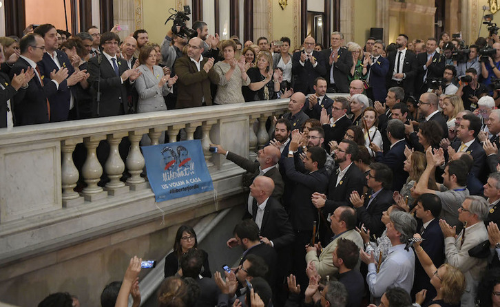 «Hoy se ha culminado el mandato hecho en las urnas», ha celebrado, y ha pedido que las instituciones y la sociedad catalana lo defiendan conjuntamente. Se ha referido a los 650 alcaldes que han acudido al Parlament como representación de esa sociedad, y les ha recordado que la defensa y la construcción de la república no pueden hacerla sin ellos: «No se puede hacer separados».